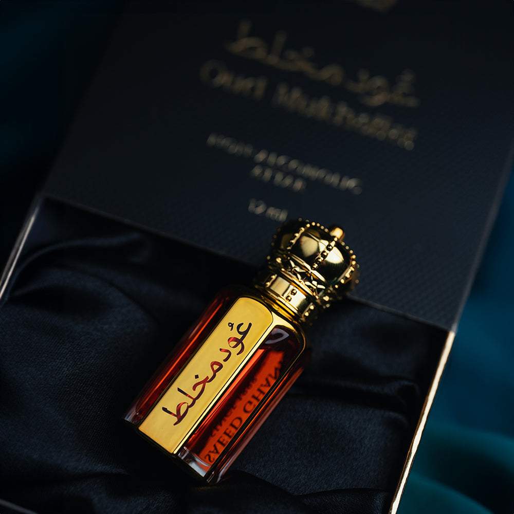 Oud Mukhallat is a captivating fragrance that opens with a burst of Bergamot, Cardamom, and Orange. In the middle, you’ll discover the floral allure of Rose, Violet, and the earthy touch of Patchouli. As it settles, the base notes of Sandalwood, Amber, and Musk create a warm and enchanting aroma that lingers beautifully.